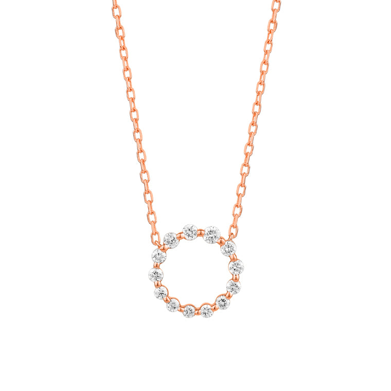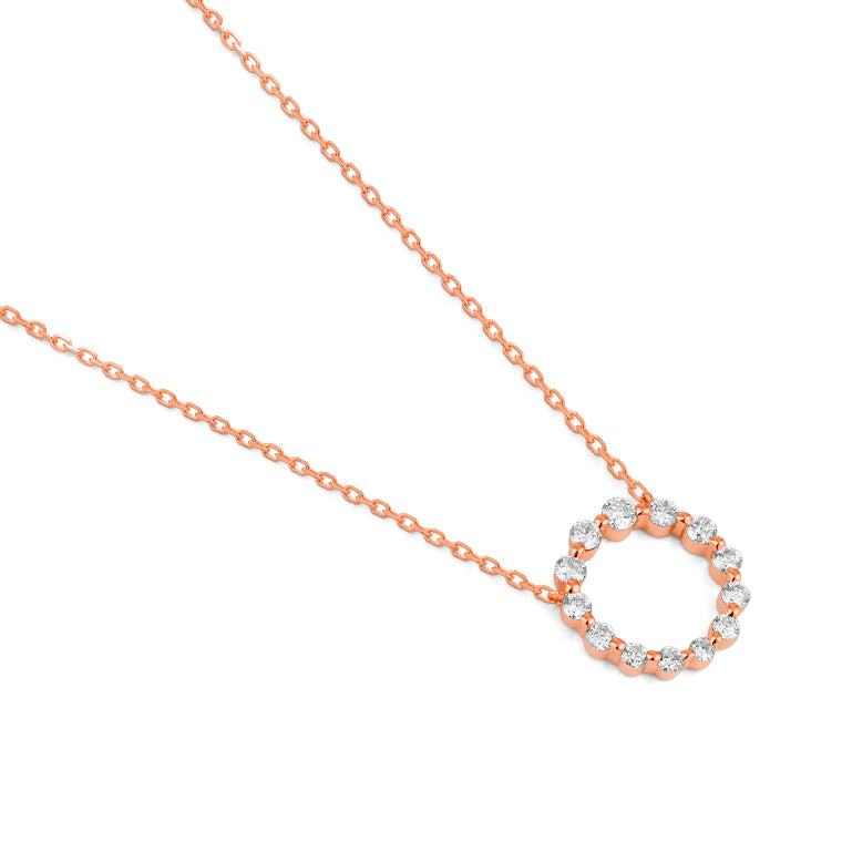 Perfect Circle – A delicate necklace featuring a finely crafted open circle of 13 brilliant-cut diamonds, set in 18k rose gold. The design is clean, balanced, and full of quiet elegance - a modern take on a classic form that stands out effortlessly on its own or layered.