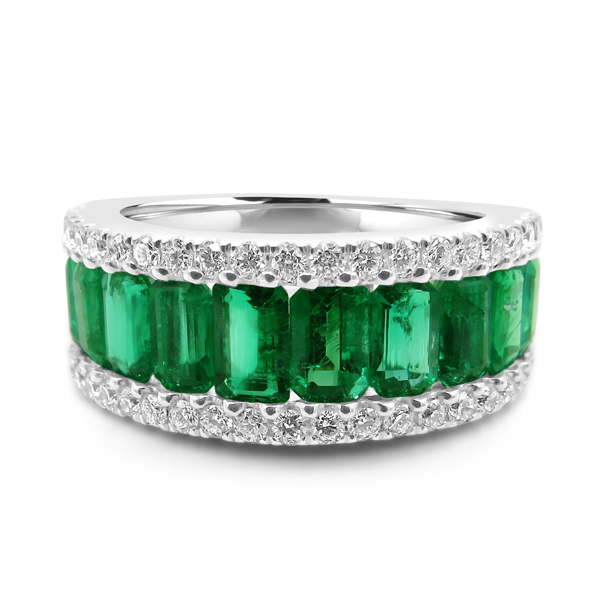 A mesmerising Colombian emerald and diamond ring made with 18k white gold.