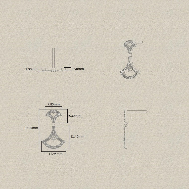 These 18k yellow gold drop earrings combine architectural elegance with playful movement. A suspended central diamond swings freely within each fan-shaped frame, catching the light with every gesture. The articulated mid-section allows the entire earring to move gracefully, creating a sense of rhythm and radiance.