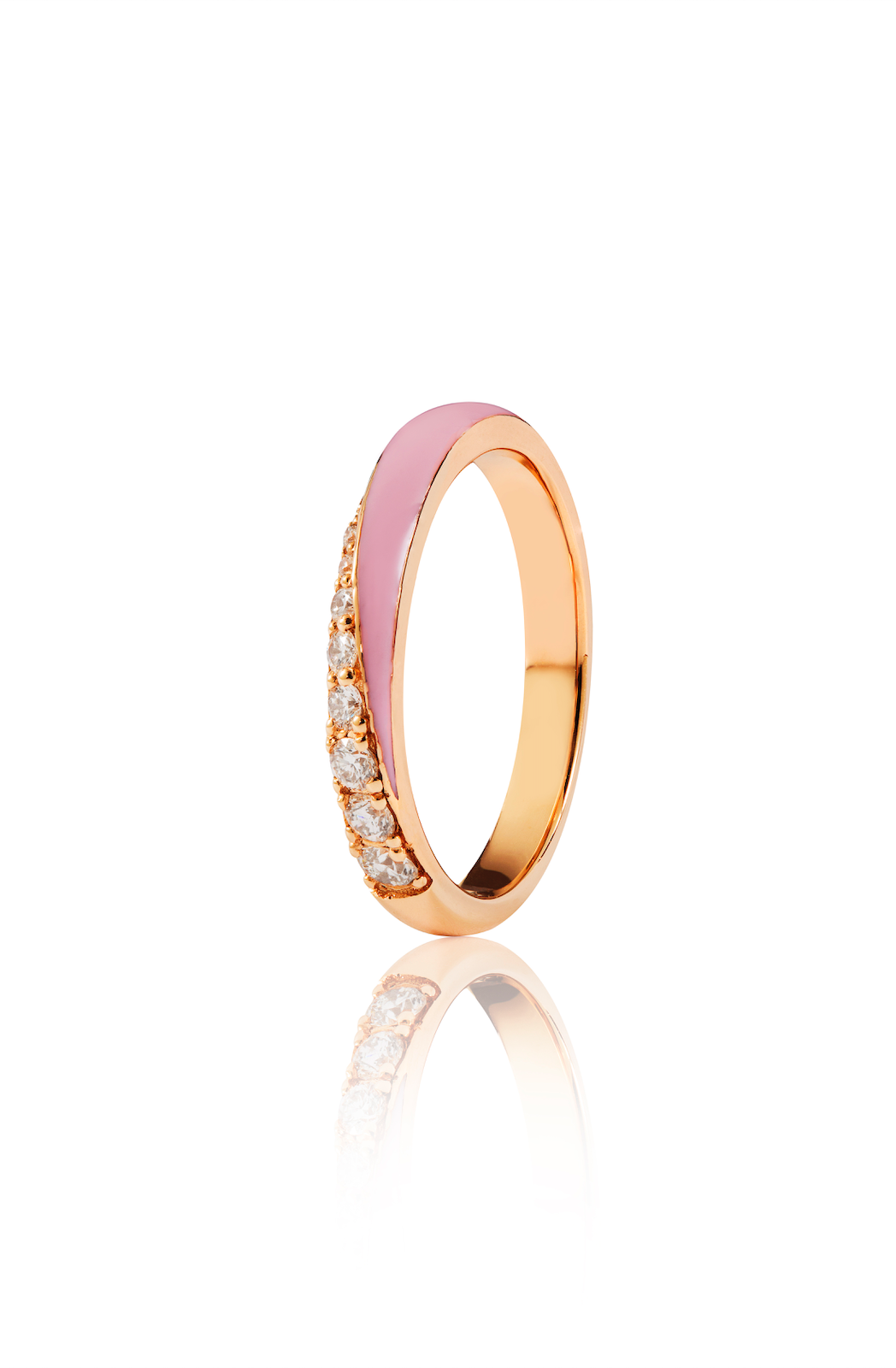 18ct Rose Gold Ring with 0.22 ct Diamonds and Pink Enamel.