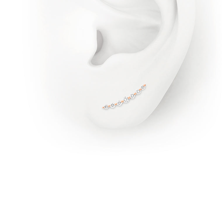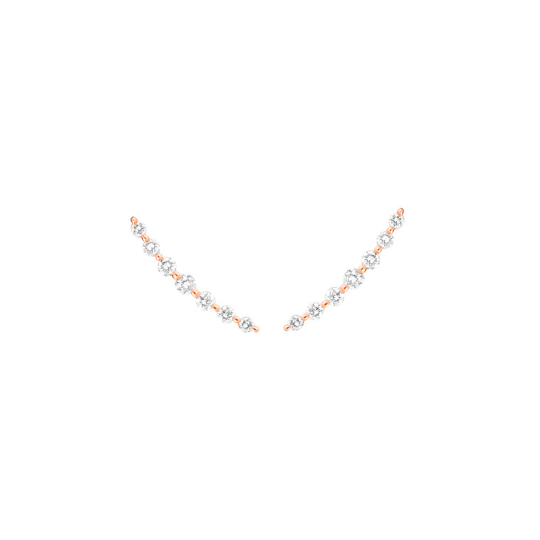Delicate yet bold, these earrings are crafted in 18k rose gold and set with a flowing line of brilliant-cut diamonds. Designed to gently follow the contour of the ear, the graduated stones form a graceful curve that catches the light with every movement.