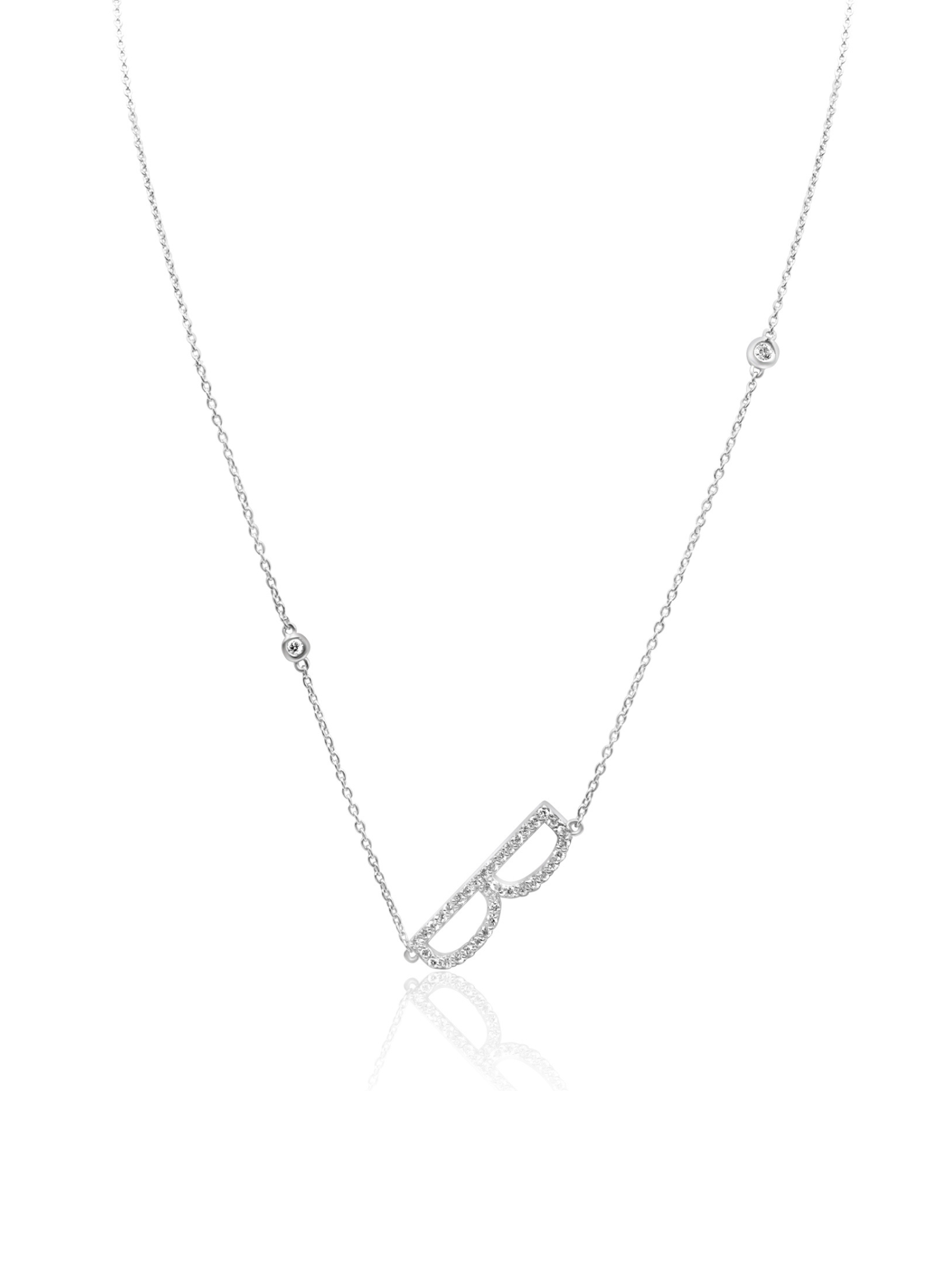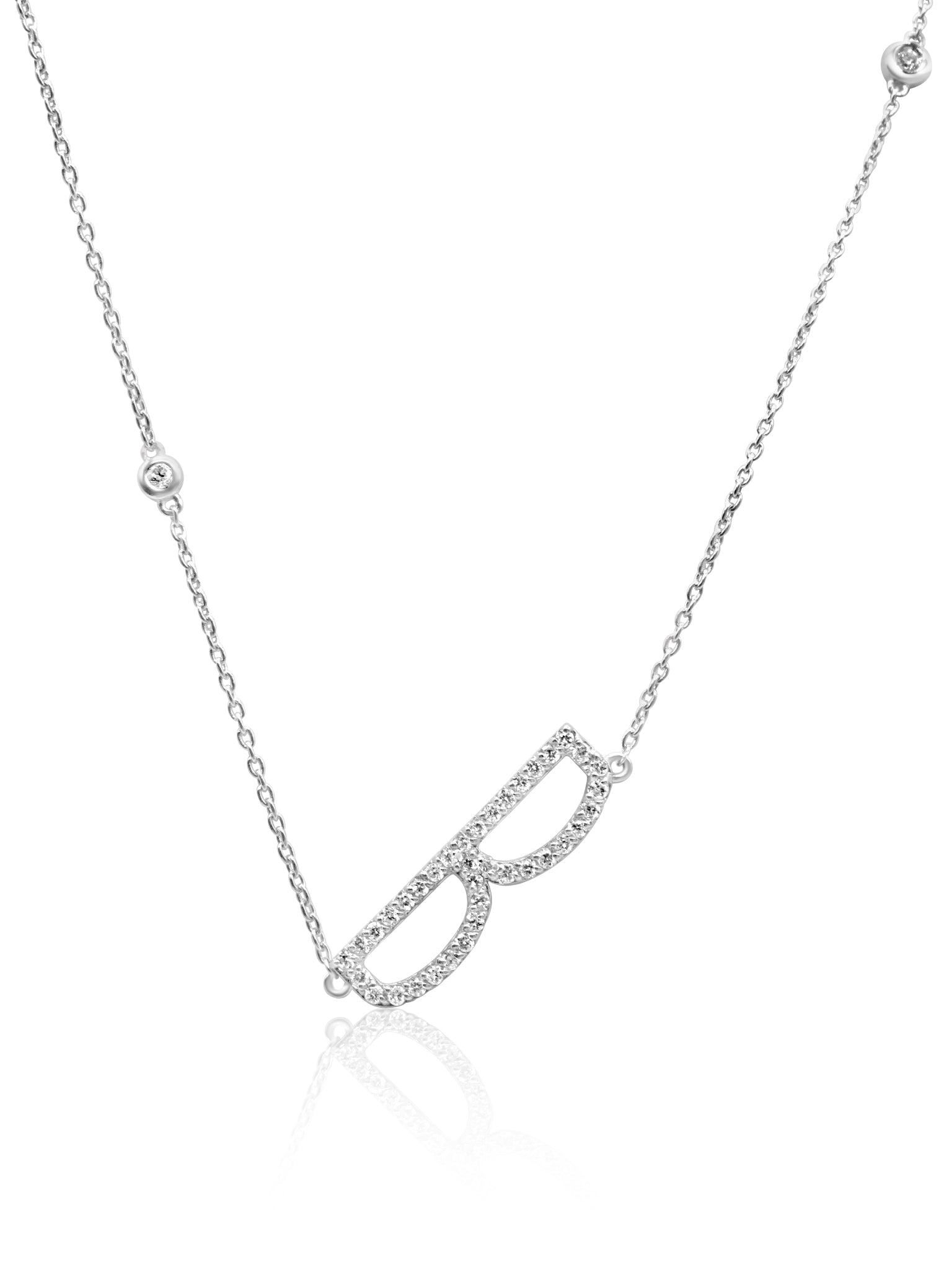 Stunning letter B pendant, intricately embellished with dazzling diamonds. Complemented by smaller stud diamonds adorning the chain, this piece exudes sophistication and charm.