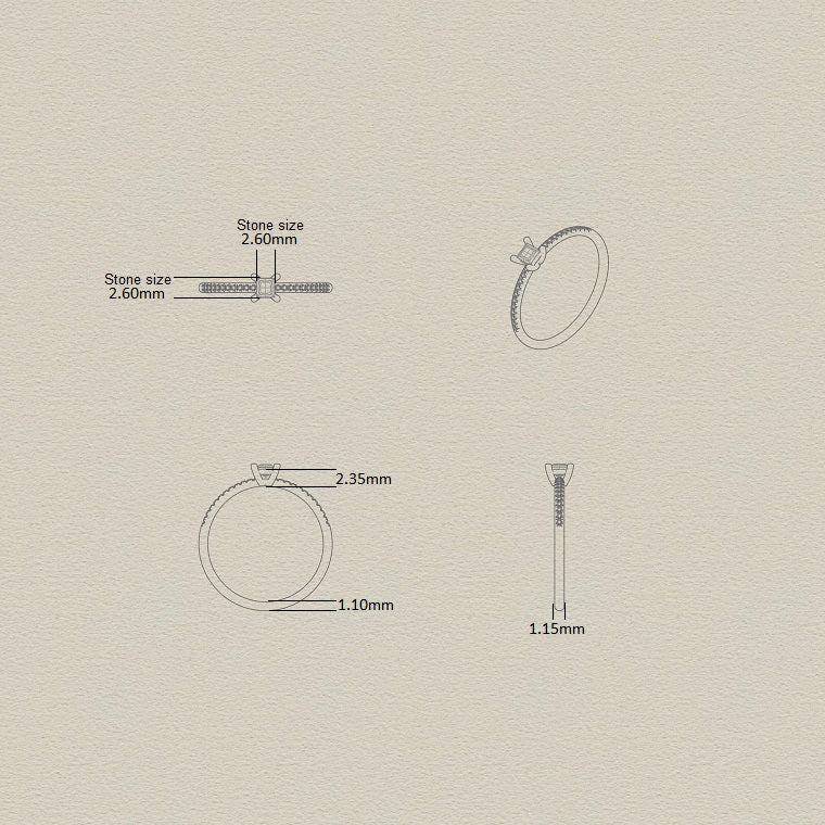 Diamond weight: 0.16 ct (FG/VS + 8/8 GH/SI quality)