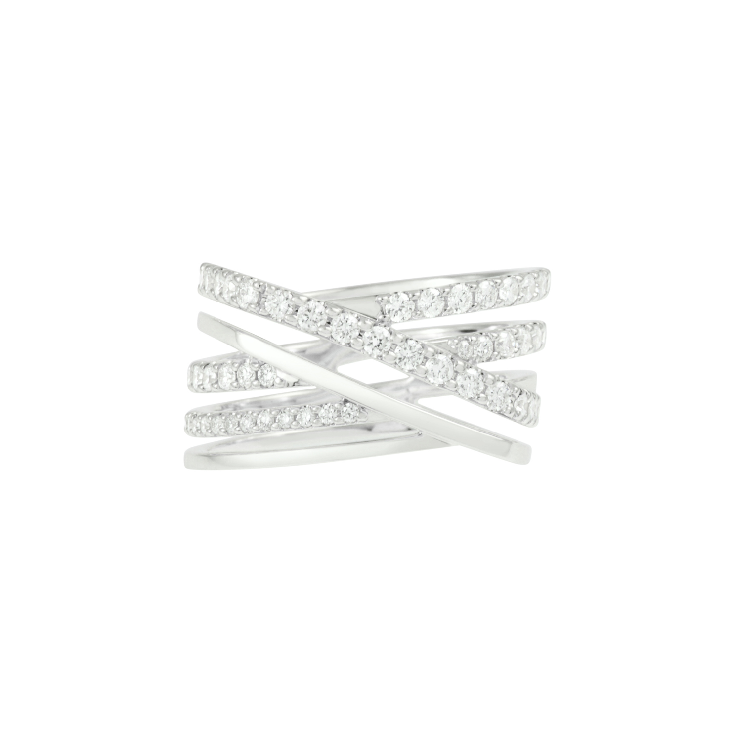The Mozafarian KATIA X Cocktail Diamond Ring, a refined expression of contemporary luxury. Crafted in 18K gold, this statement ring features 0.90 carats of G/SI round brilliant-cut white diamonds, chosen for their clarity and radiance.
