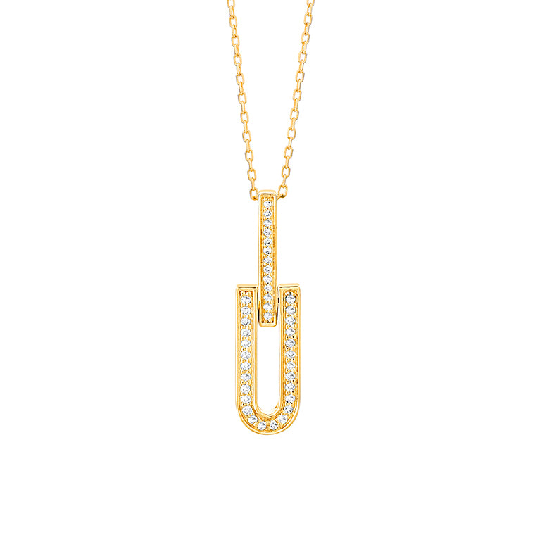 A refined expression of geometric elegance, this 18k yellow gold necklace showcases a sleek drop pendant with a geometric silhouette. Set with brilliant-cut diamonds, the elongated form adds a modern twist to classic sparkle. Perfect for layering or wearing as a standalone statement.