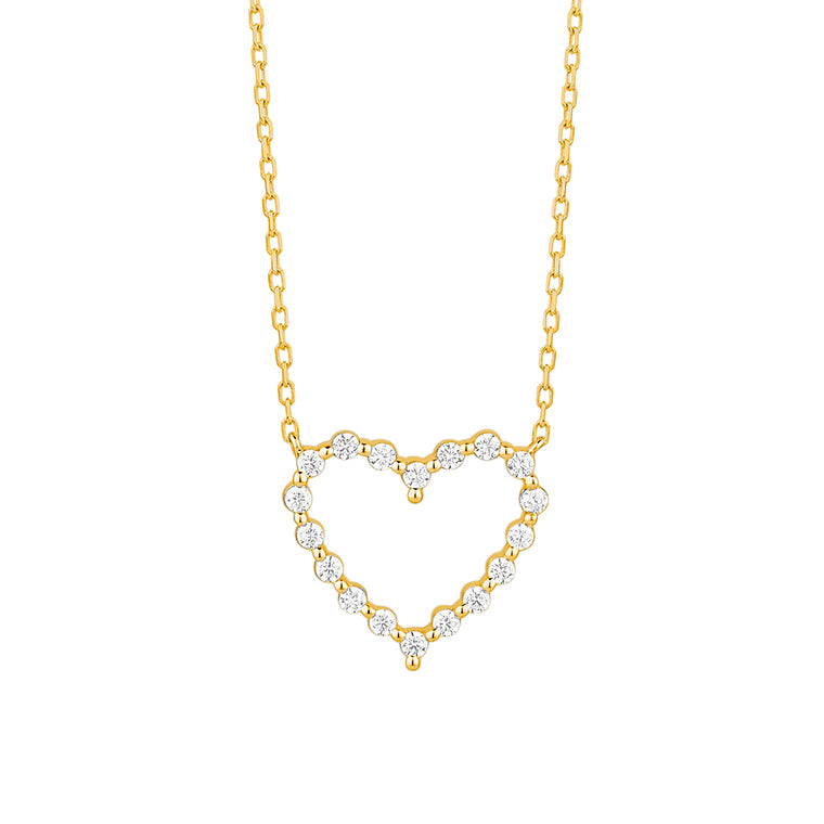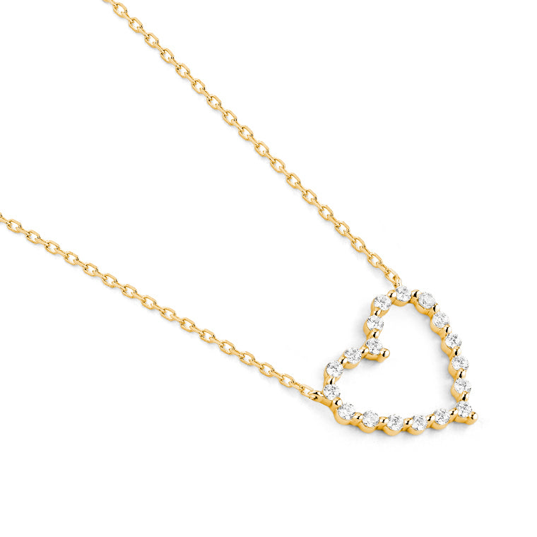 Crafted in 18k yellow gold, this delightful necklace features a delicate open heart silhouette traced with brilliant-cut diamonds. Light and graceful, the design combines timeless symbolism with contemporary refinement - radiating warmth, elegance, and a touch of sentiment.