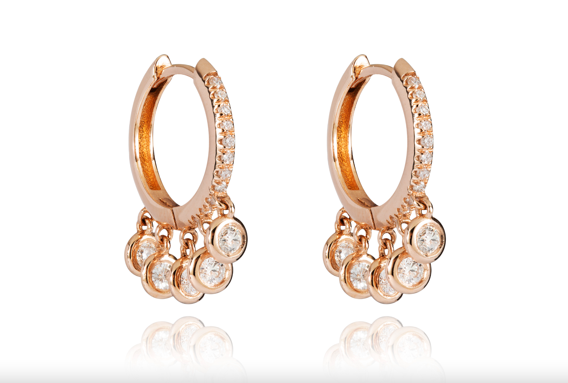 18ct Rose Gold Hoop Earrings with 0.44 ct Moving Diamonds. Hoop Diameter: 13mm