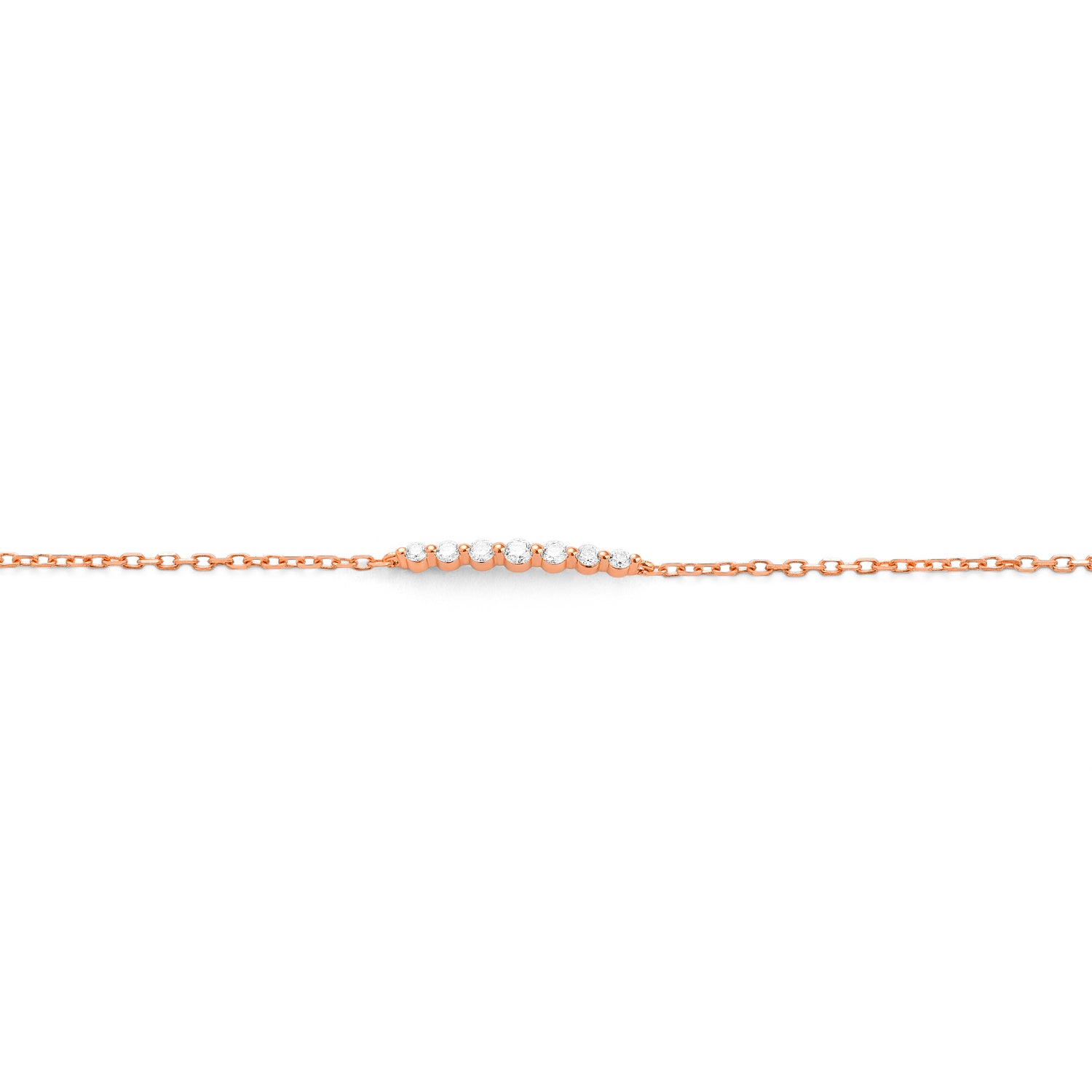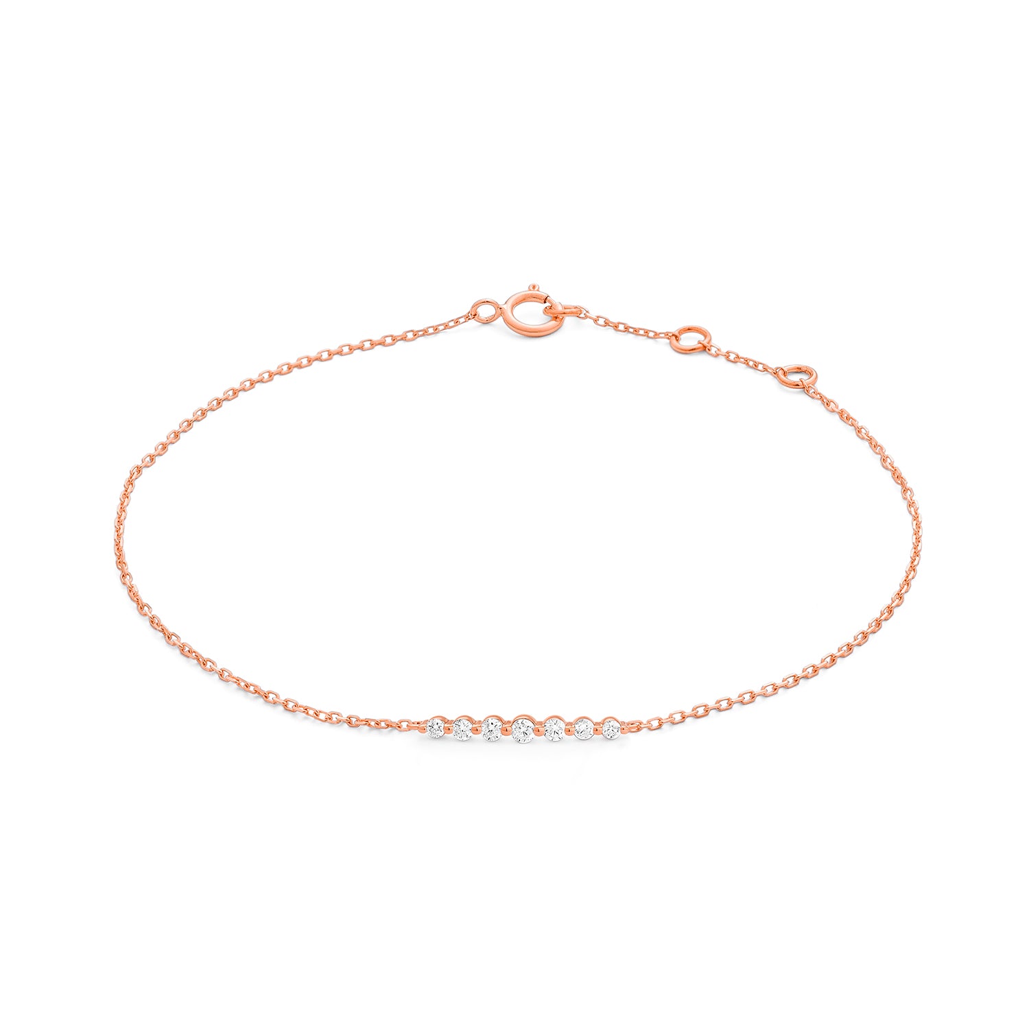 Delicate yet luminous, this 18k rose gold bracelet features a graceful line of seven graduated diamonds, each set to highlight its natural brilliance. The fine chain adds a whisper of elegance - perfect worn solo or stacked for subtle sparkle.