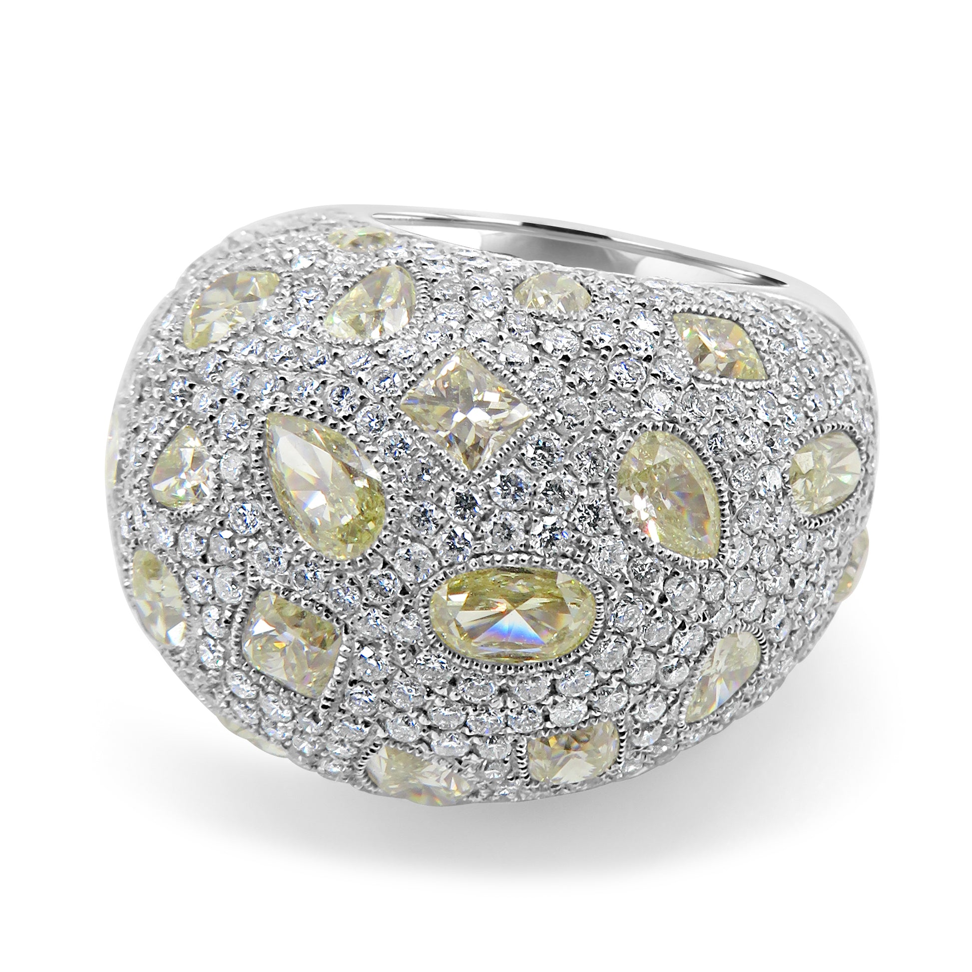 Mesmerising 18k white gold Bon Bon ring with white and yellow diamonds.