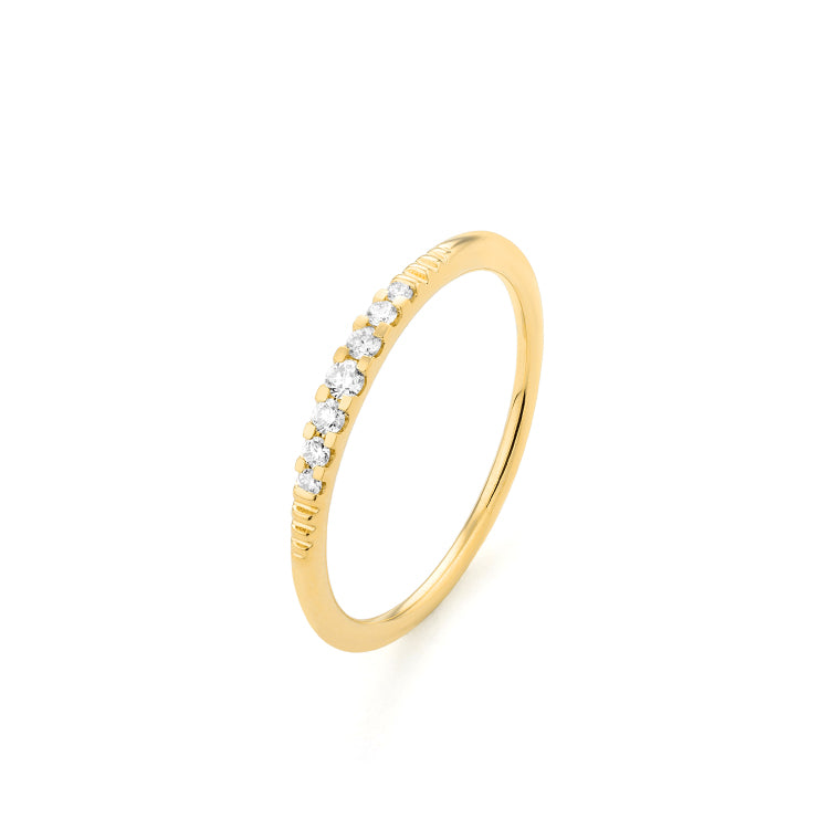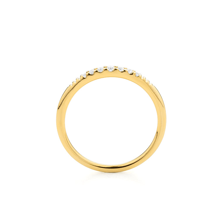 A timeless touch of elegance — crafted in 18k yellow gold, this refined half eternity ring showcases seven round brilliant diamonds in a delicate line. Its warm golden tone adds a classic richness, perfect for stacking or wearing on its own as a symbol of enduring beauty.