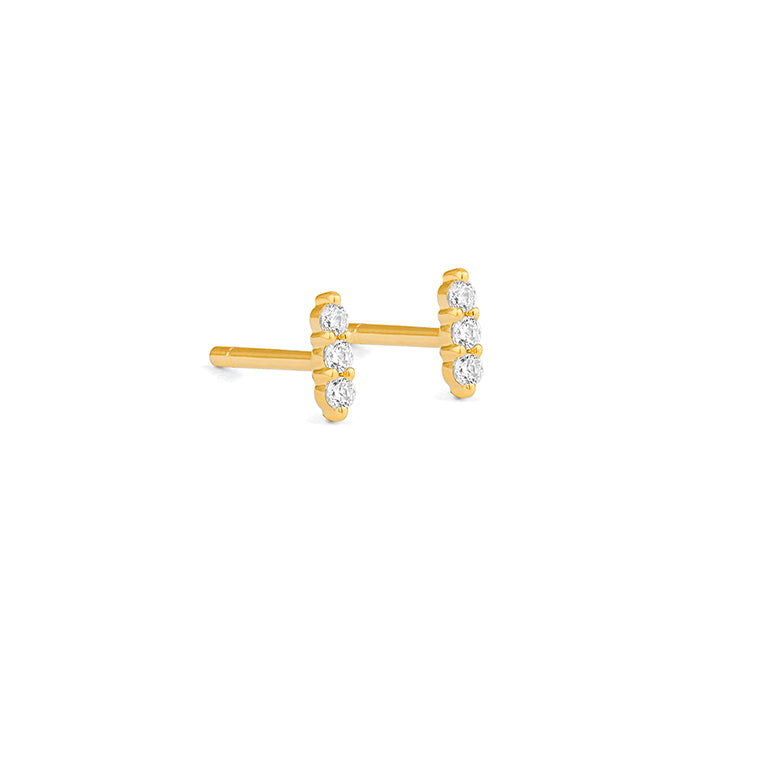 Minimal and radiant, these stud earrings are crafted in 18k yellow gold and set with a vertical line of three brilliant-cut diamonds. Their clean, modern silhouette offers just the right touch of sparkle - refined for everyday wear, yet elegant enough for evening.