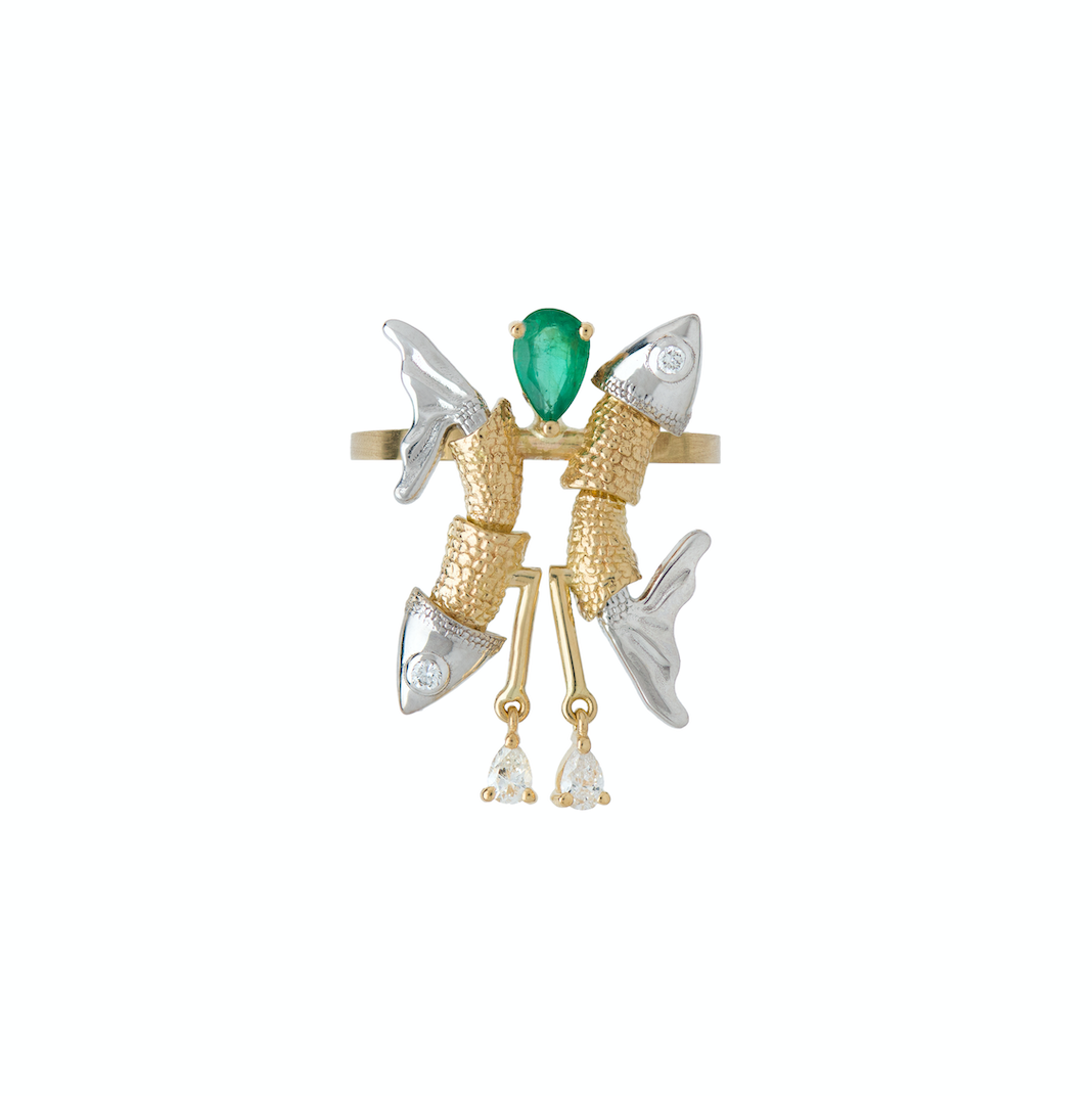 Emerald and Diamond Pisces Ring