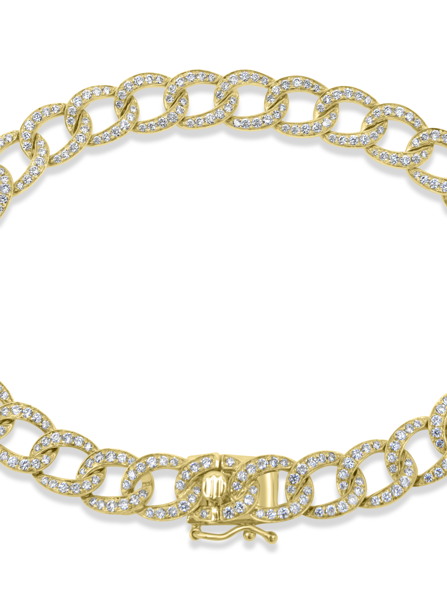 Stunning Mozafarian 18 karat yellow gold chain bracelet adorned in dazzling diamonds.