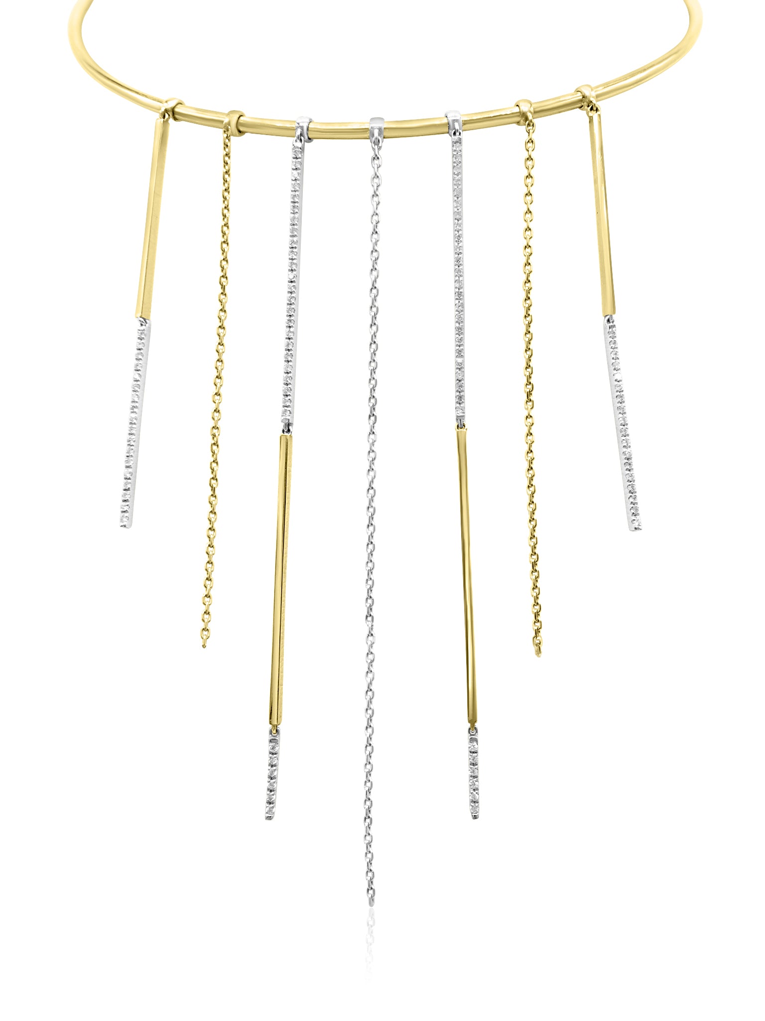 18 karat gold and white gold waterfall necklace adorner with small shimmering diamonds.