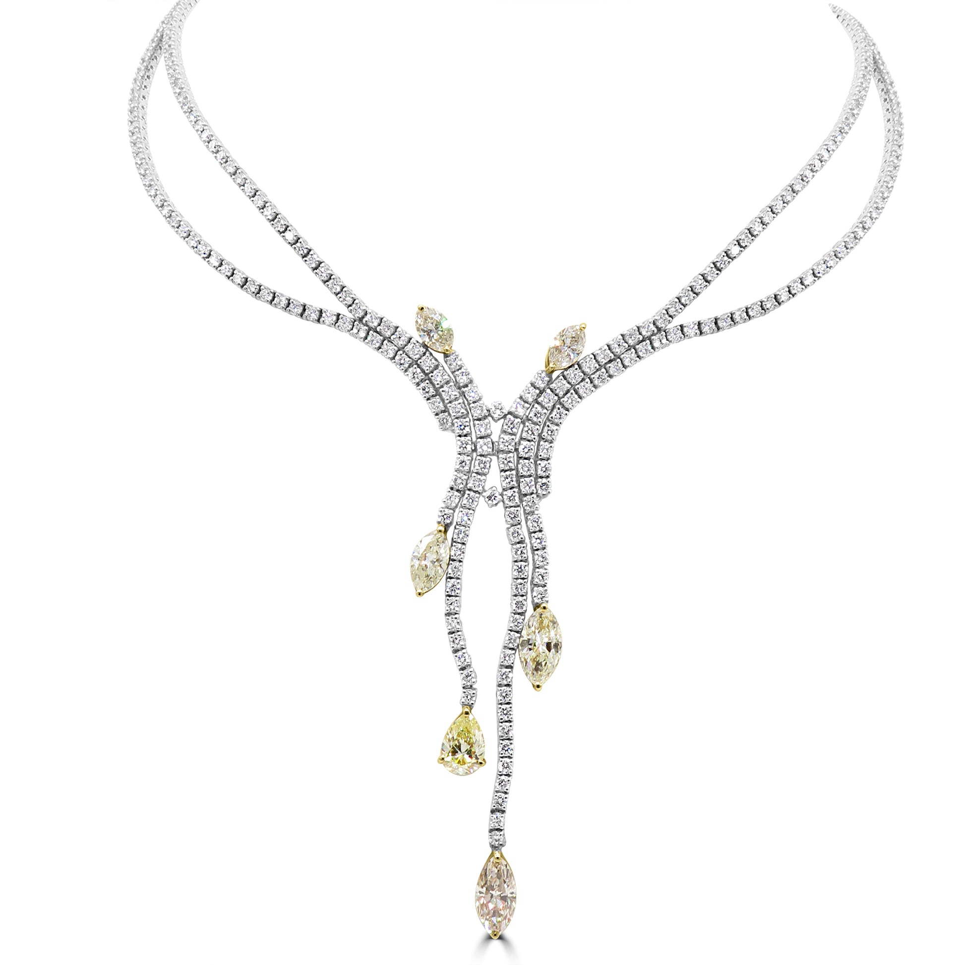 Spectacular 18k white gold diamond necklace, with large marquise diamonds as well as fine round brilliant diamonds
