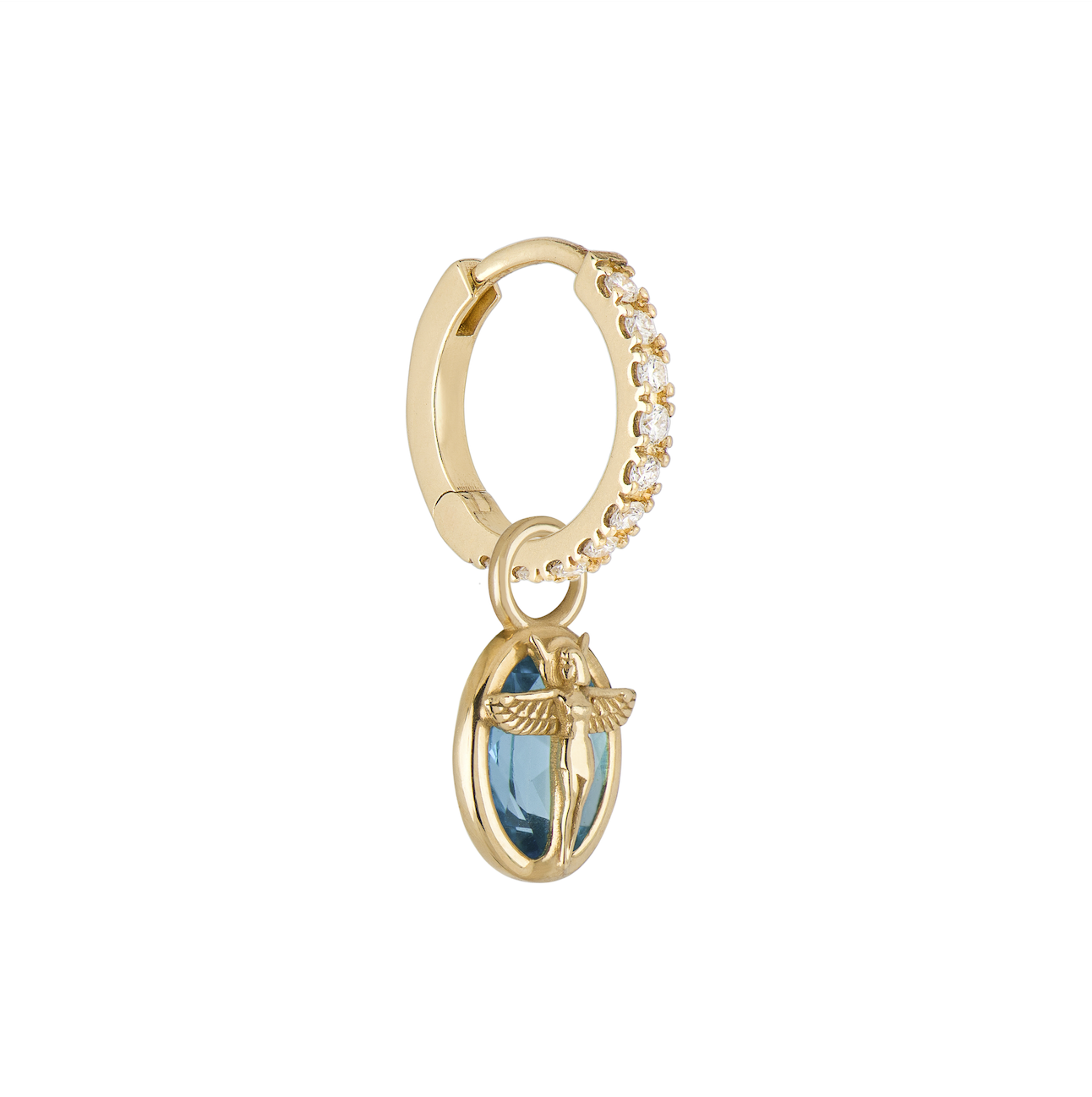 This piece features a Swiss blue topaz, set in 18k yellow gold, with a total weight of 1.3 g.